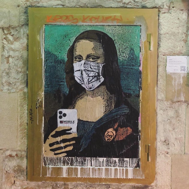 Molti artisti in giro per il mondo si sono cimentati nella reinterpretazione di celebri modelli artistici adattandoli alla realtà attuale, tramite la ormai diffusa tecnica del murales o tramite il photoshop, che da un lato fanno sorridere ma dall'altro mostrano in maniera più che efficace la triste contemporaneità che viviamo a causa della pandemia. Troviamo i due amanti del celebre "Il bacio" di Hayez con delle bottigliette di amuchina in mano (1), la Gioconda con la mascherina sul volto (2), così come la protagonista de "L'assenzio" di Degas (3).